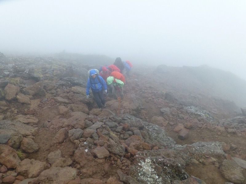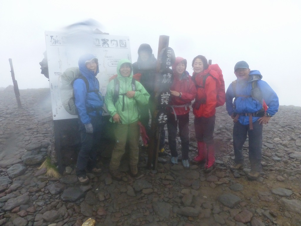 瞬間風速40メートルの風も吹く中、硫黄岳へ到着。いっぱい勉強になりました。