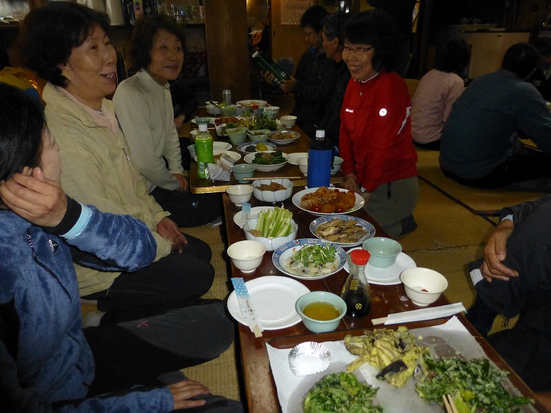 夕食も、手作り料理のバイキング。地酒の振る舞い酒と大サービス