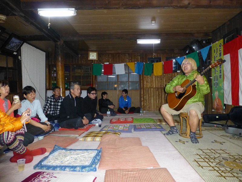 「加藤文太郎の歌」を歌っているリピート山中さんのミニコンサート