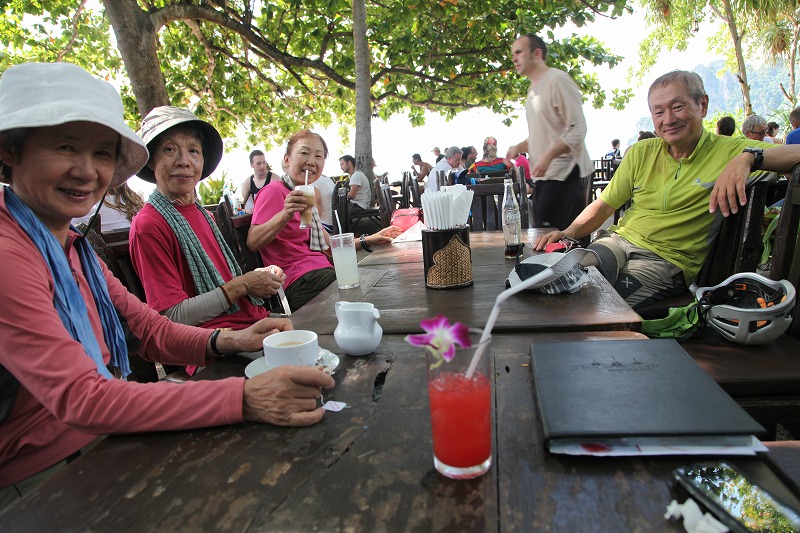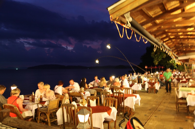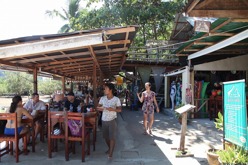 アオナンビーチ沿いのSEAFOODレストラン。お昼前に到着したが、この日はクライミングせずにゆっくりと休養した。