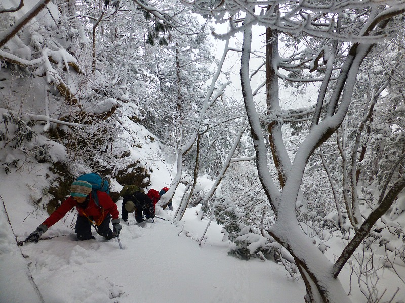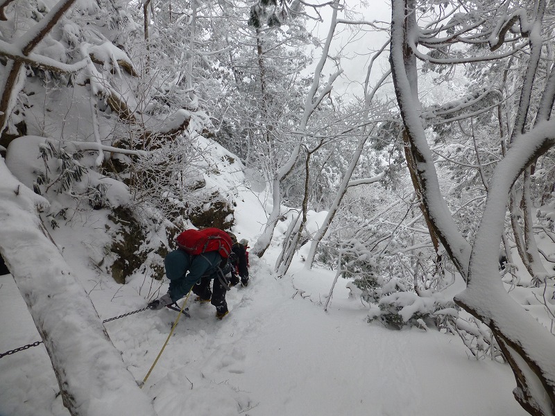 急峻な岩場交じりの登りが続きます。