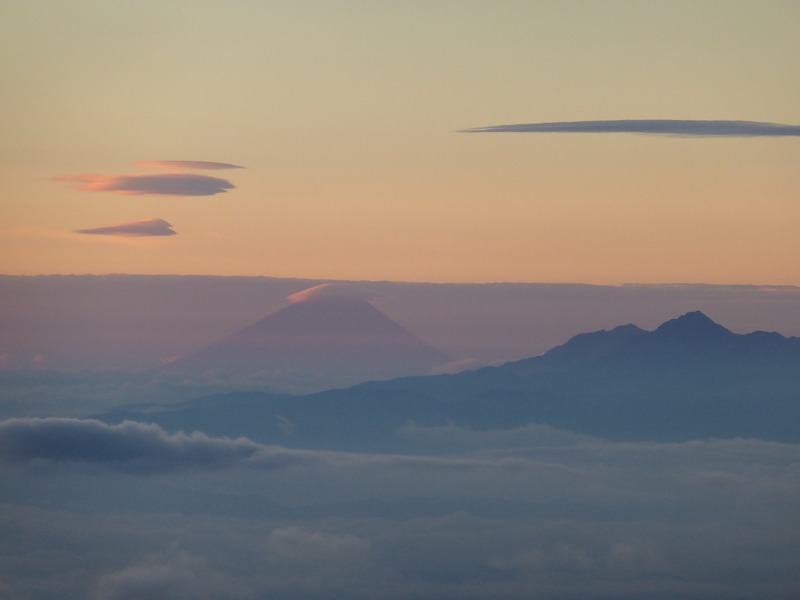 南アルプスの甲斐駒ヶ岳と富士山