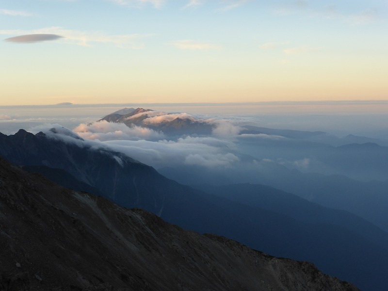西穂高岳の稜線と乗鞍岳