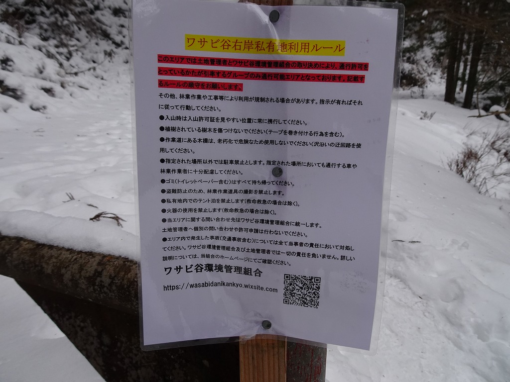 ※今シーズンよりワサビ谷への入山は、ワサビ谷管理組合への加入と許可証が必要となっています。